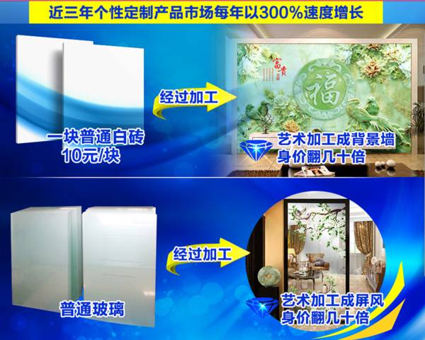 噴繪幅面:2.00x3.20米/2.54x1.22米/1.6x1.22米,高度不超過100mm的玻璃、瓷磚、亞克力板、金屬板、宣傳布等超大平面物品。