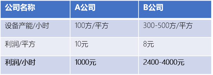 A機構的設備產能為100方/小時,倘若他每1平方的利潤是10元,那樣他1小時的利潤便是1000元。
