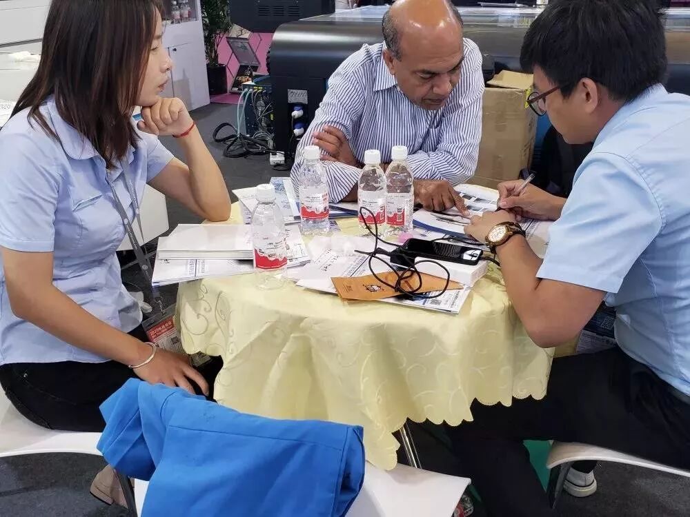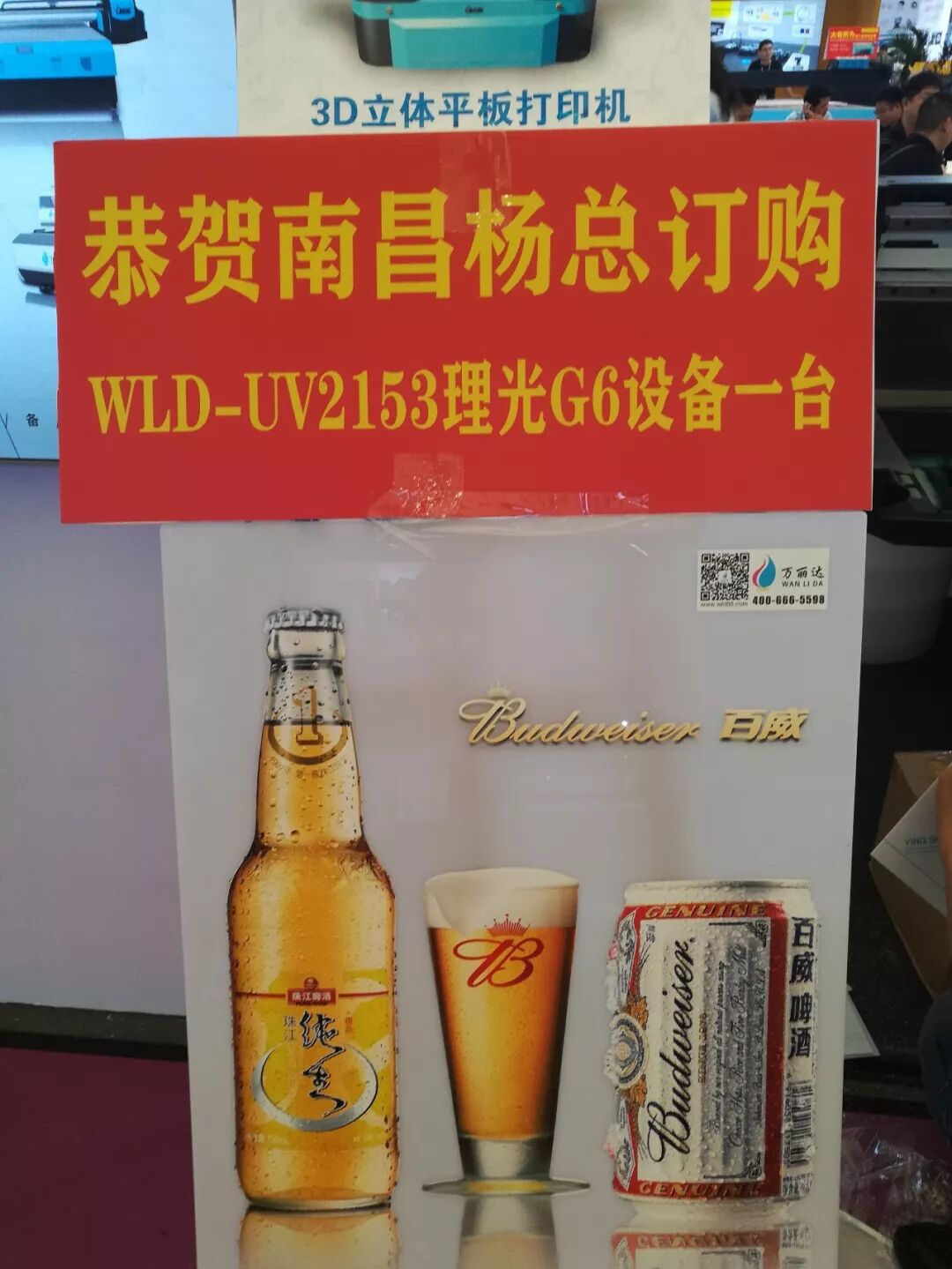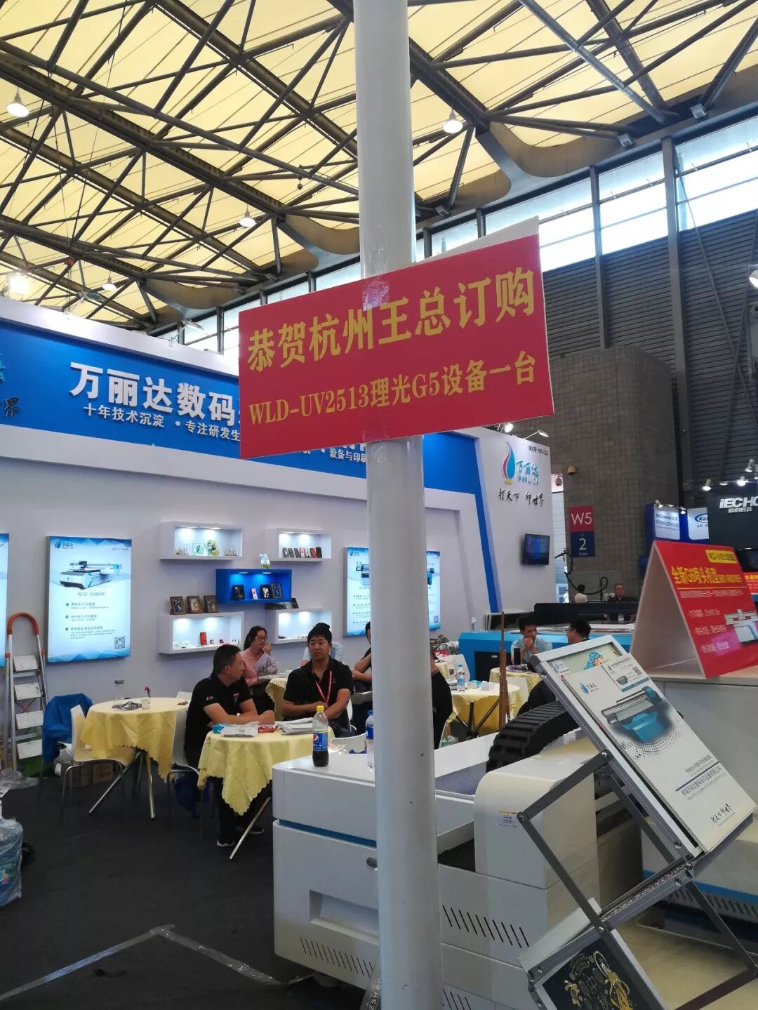 而設備賣光更加是萬麗達的驕傲,在三天展會時期,時尚印花看到萬麗達在客戶購買現場設備之后,都會打印標識以示此機已售出,而隨著展會結束時間的逐步來臨,萬麗達的售出標識亦越貼越多,可見萬麗達的uv打印機受認可程度。