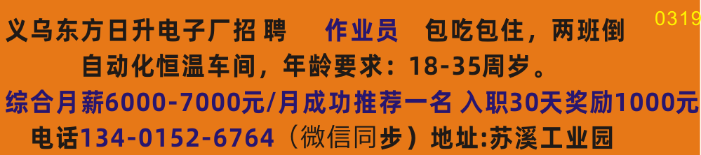 蘇溪賽兄納弟亞克力義烏分廠招:03-14