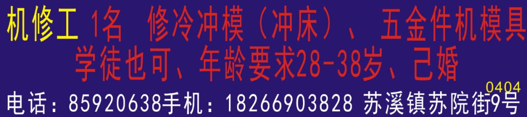 蘇溪鋁箱廠招聘組裝工數名03-14