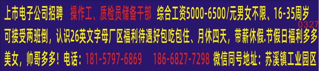 鋁箱廠招工組裝工 數名男女不限 夫婦工優先薪水:包吃包住,實行計件,多勞多得工資4000-6500元/月位置:蘇溪鎮蘇新街25號